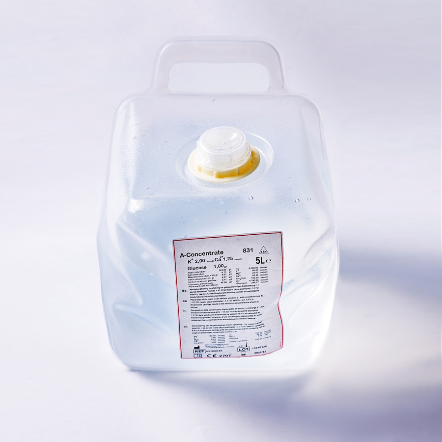 Dialyskoncentrat till Fresenius 5008. Förpackning av mjukplast innehållande 5 liter.