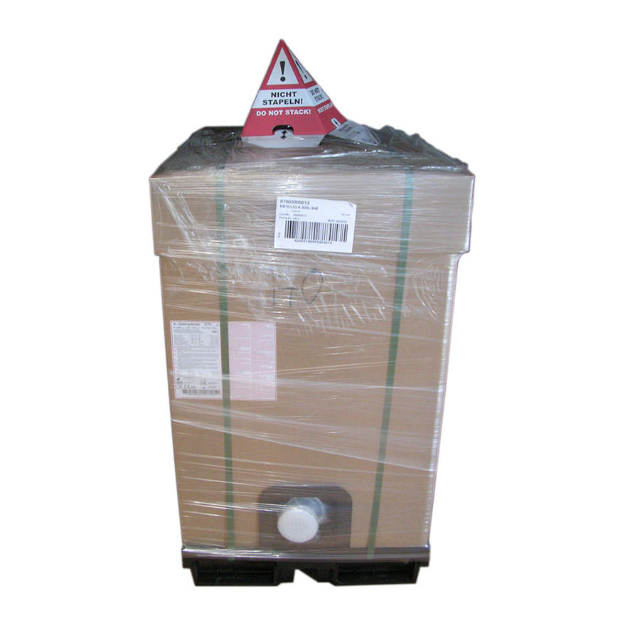 Dialyskoncentrat för centraladministrering. Förpackning innehållande 300 liter, av mjukplast med skyddande kartonghölje.