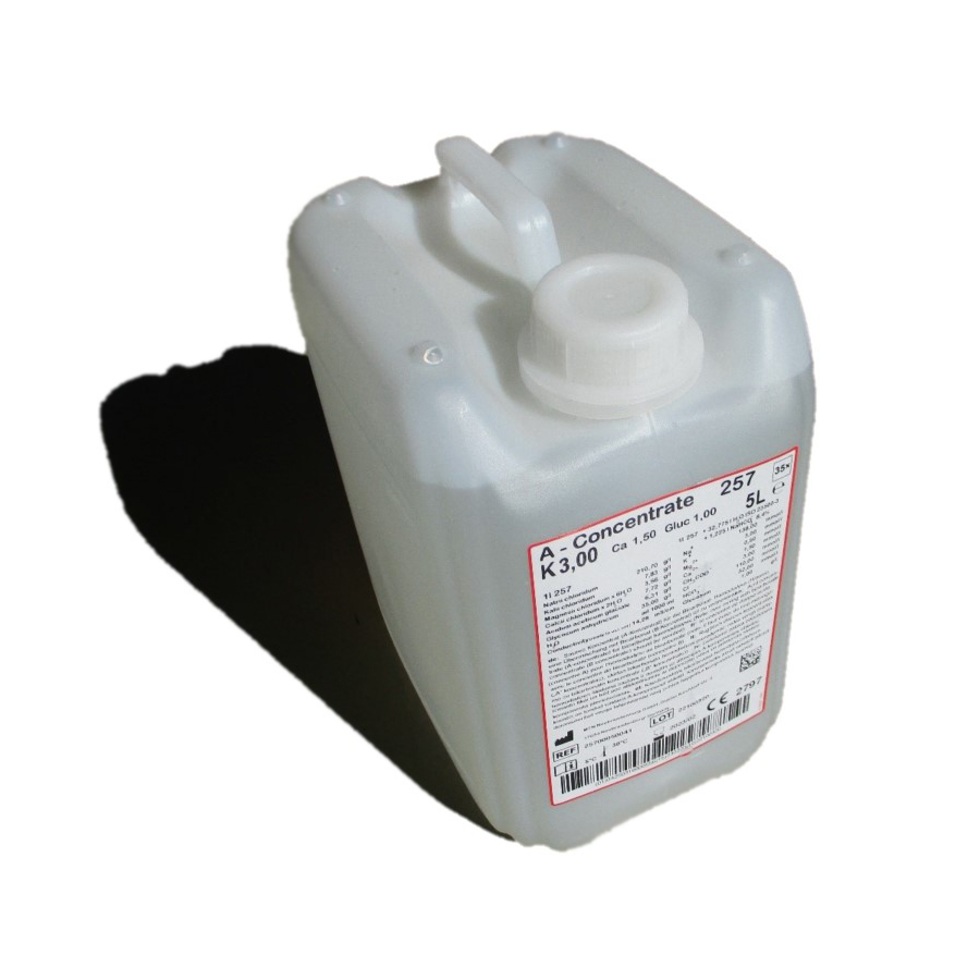 Dialyskoncentrat, för alla Baxters dialysmonitorer. Förpackning av hårdplast innehållande 5 liter.