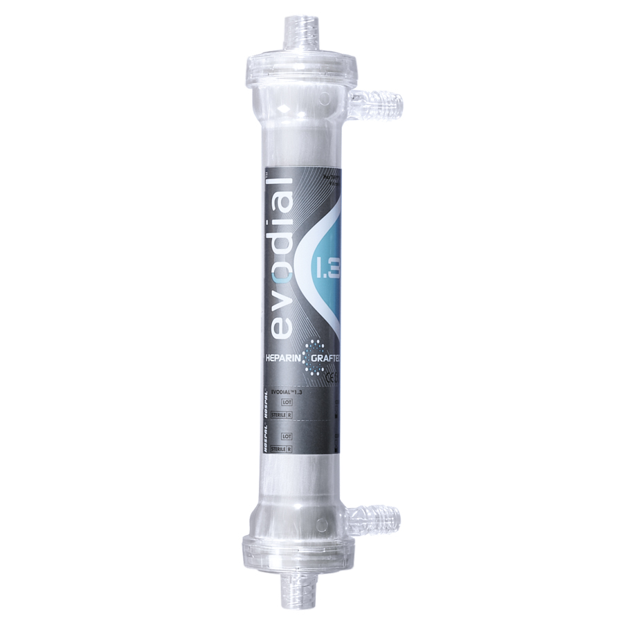 Högpermeabel dialysator med förhepariniserat membran för behandlingar utan antikoagulantia.