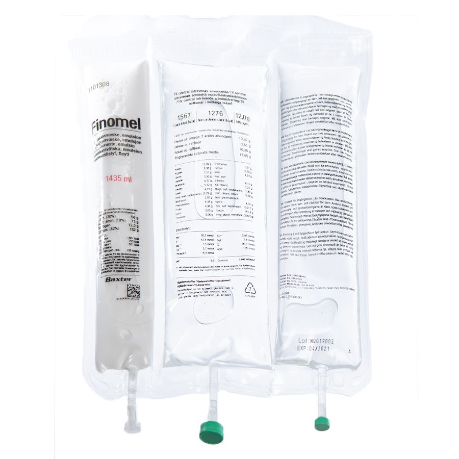 Finomel är indicerad för parenteral nutrition till vuxna när oral eller enteral nutrition är omöjlig, otillräcklig eller kontraindicerad.