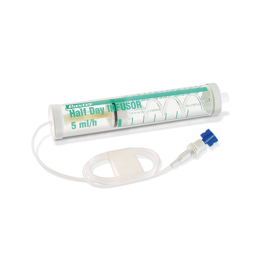 Bärbar infusionspump för engångsbruk. En elastomerisk ballong pressar ut läkemedlet. Infusionshastigheten kontrolleras av en flödesrestriktor och infusionen avstannar när pumpen är tömd.