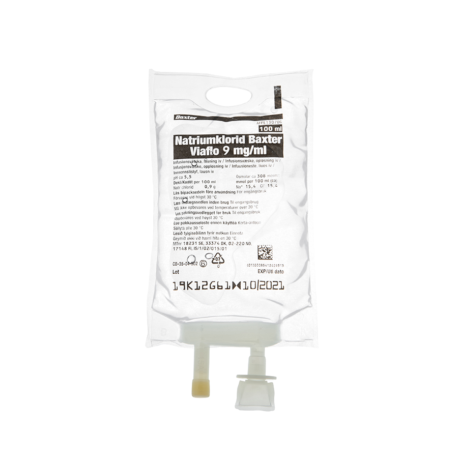 Natriumklorid Baxter Viaflo 9 mg/ml är indicerad för; Behandling av isoton extracellulär dehydrering, behandling av natriumbrist, vehikel eller spädningsvätska för kompatibla parenterala läkemedel.