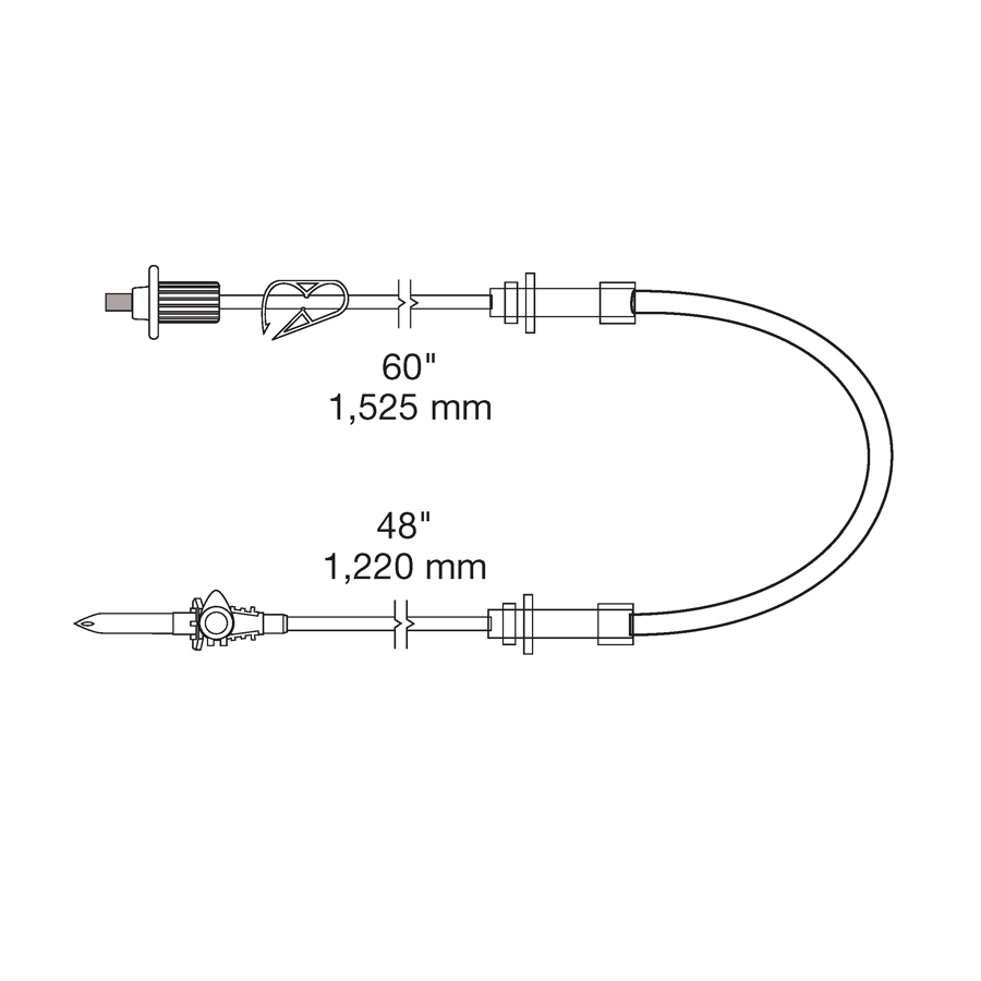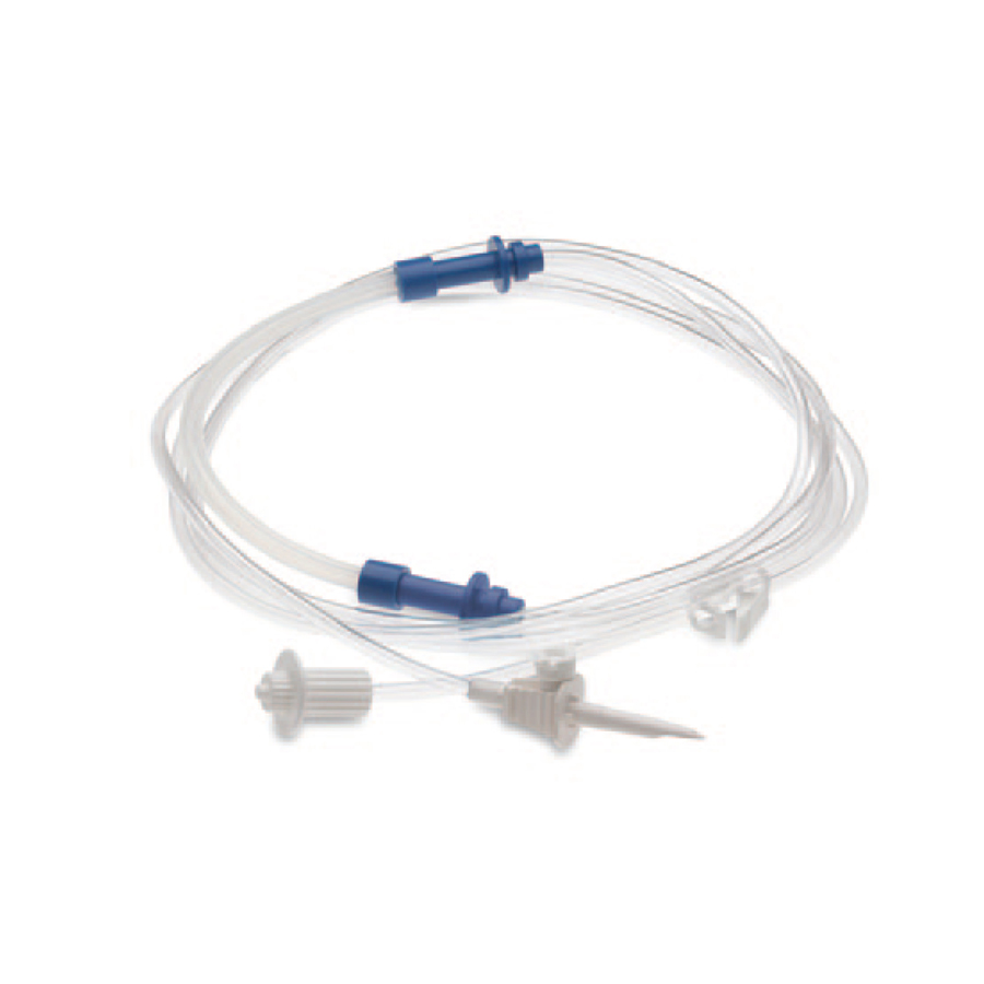 Slangset med luftad spike i ena änden och luer lock i andra änden.